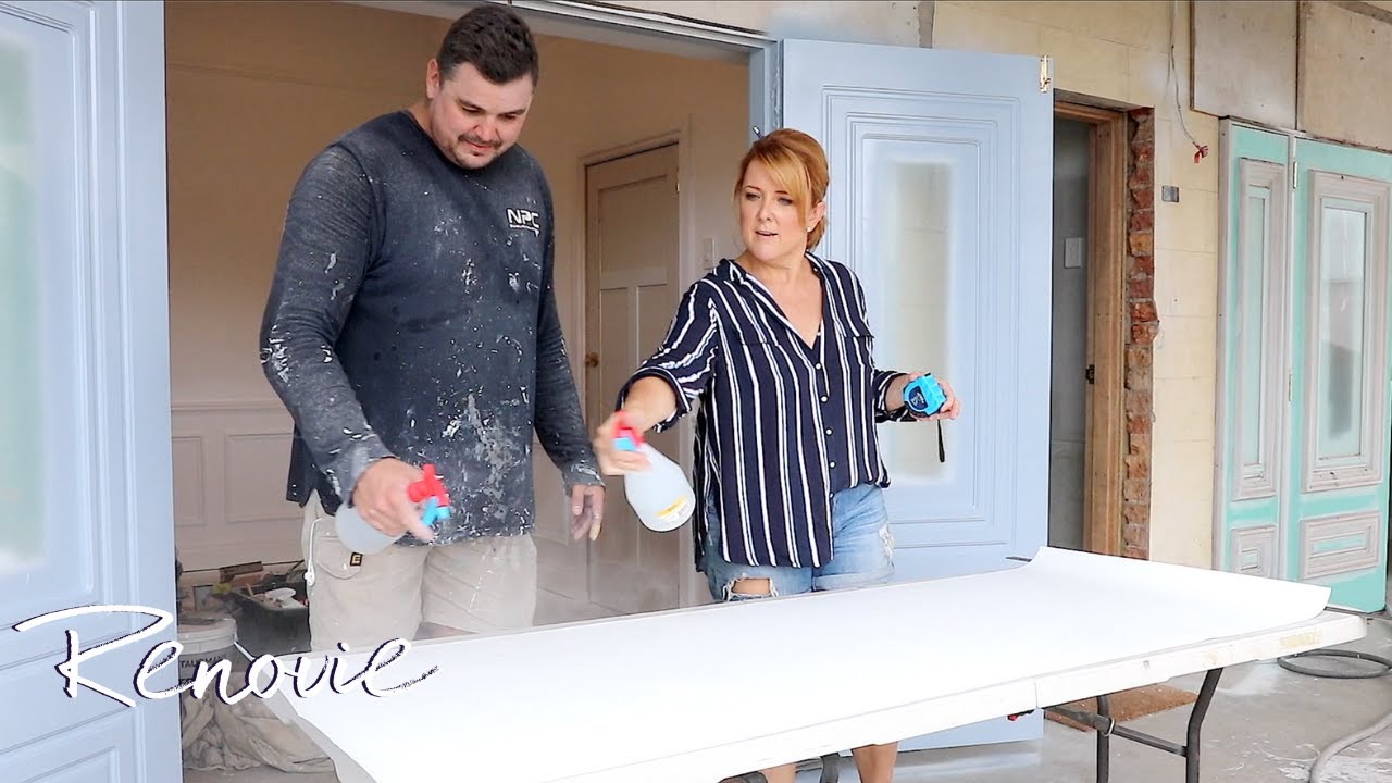 With the help of Hunter Lining Project again, it was time to install our heavy white set cornices in place